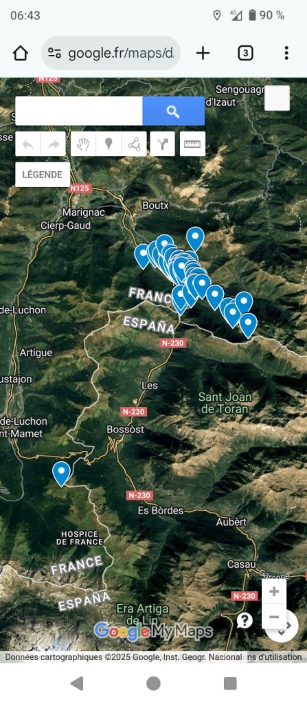 Pour faire apparaître les lieux de FOS sur Maps, cliquez sur le logo « enregistrés » en bas d’écran, puis sur « cartes » puis sur « Noms de lieux FOS »