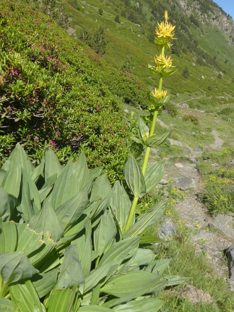Les gentianes jaunes poussent leurs larges feuilles.