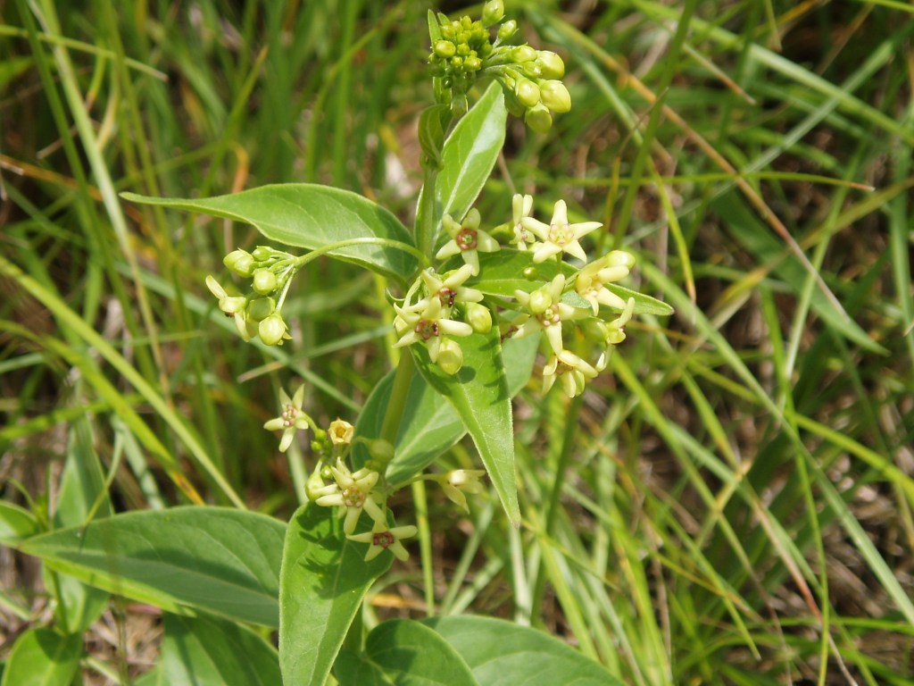 Le Vincetoxicum appuie des branches qui s’allongent démesurément sur les arbustes voisins. La racine est vomitive.